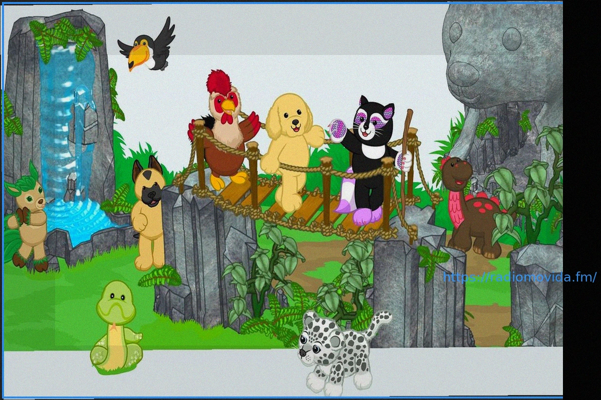 In un ambiente vibrante e naturale, un gruppo di personaggi animati saltella giocosamente.