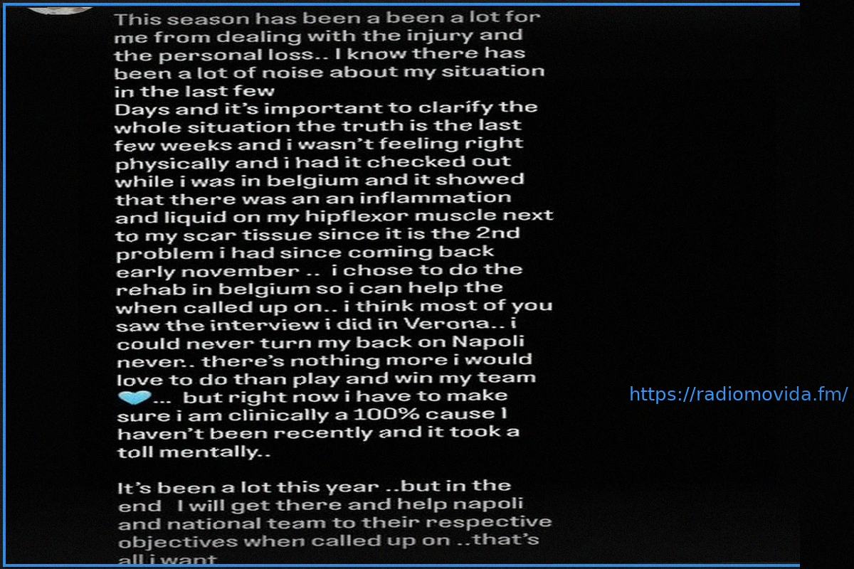 “Credo che avrete visto l’intervista che ho rilasciato a Verona. Non abbandonerò mai il Napoli, voglio solo giocare e vincere con la mia squadra. Ma in questo momento devo assicurarmi di essere clinicamente al 100%: non esserlo stato di recente mi è costato mentalmente.”